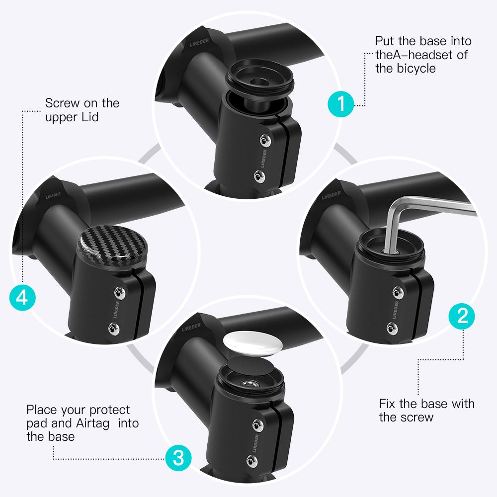 The AirTag is perfectly positioned, hidden in the headset tube. A great device to track your bike and recover it should it be stolen. AirTag bike is made of high-quality aluminum alloy and reinforced nylon material, strong and sturdy, made with CNC technology. It also keeps your AirTag dry and out of the elements. At 10.8 g, it is extremely light weight, thanks to a thickness of only 1 cm, it is completely integrated with your Recon headset. What’s included with your RECON bike Air Tag System? — 1 x Aluminum Alloy Base(CNC), 1 x Reinforced nylon Lid(PA66-CNC), 1 X Stainless Steel Bolt(304), 1 X Protect pad(EVA), 1 X Package case(PP) and one Apple AirTag. You will need an Apple device (Iphone, Ipad, etc.) to track. Fits in all Recon Power Bikes. Available only in matte black. No subscription service required.